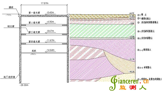 基坑工程的監(jiān)測方案設(shè)計(jì)應(yīng)綜合分析工程地質(zhì)條件、基坑維護(hù)工作性狀和周圍環(huán)境的基礎(chǔ)上作出,應(yīng)具針對(duì)性