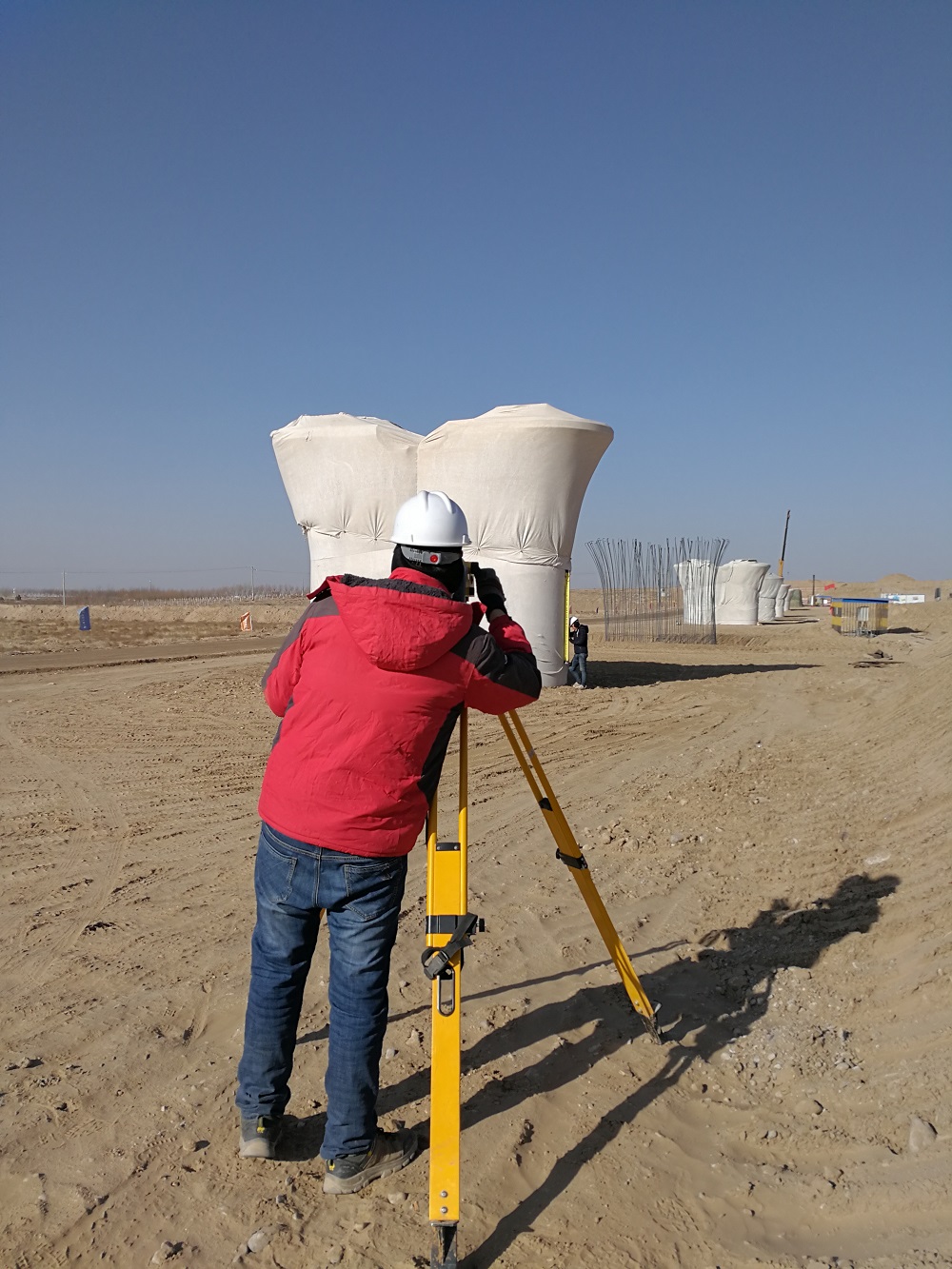 銀西沉降組員工墩身沉降測(cè)量